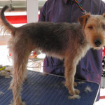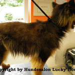 Der Terrier auf dem oberen Bild wurde absichtlich sehr weit runter getrimmt, damit sich das neue Haar wieder schön kräftig entwickeln kann. Zwischen den ersten beiden und den anderen 3 Bildern liegen 10 Wochen und man sieht, daß die Farben und das Fell schön kräftig geworden ist!