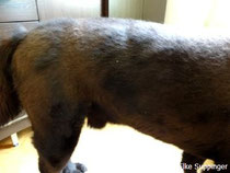 So kann ein geschorener Labrador aussehen nach dem Scheren! Das Fell ist nicht mehr richtig nachgewachsen, da wahrscheinlich in die Unterwolle geschoren wurde!